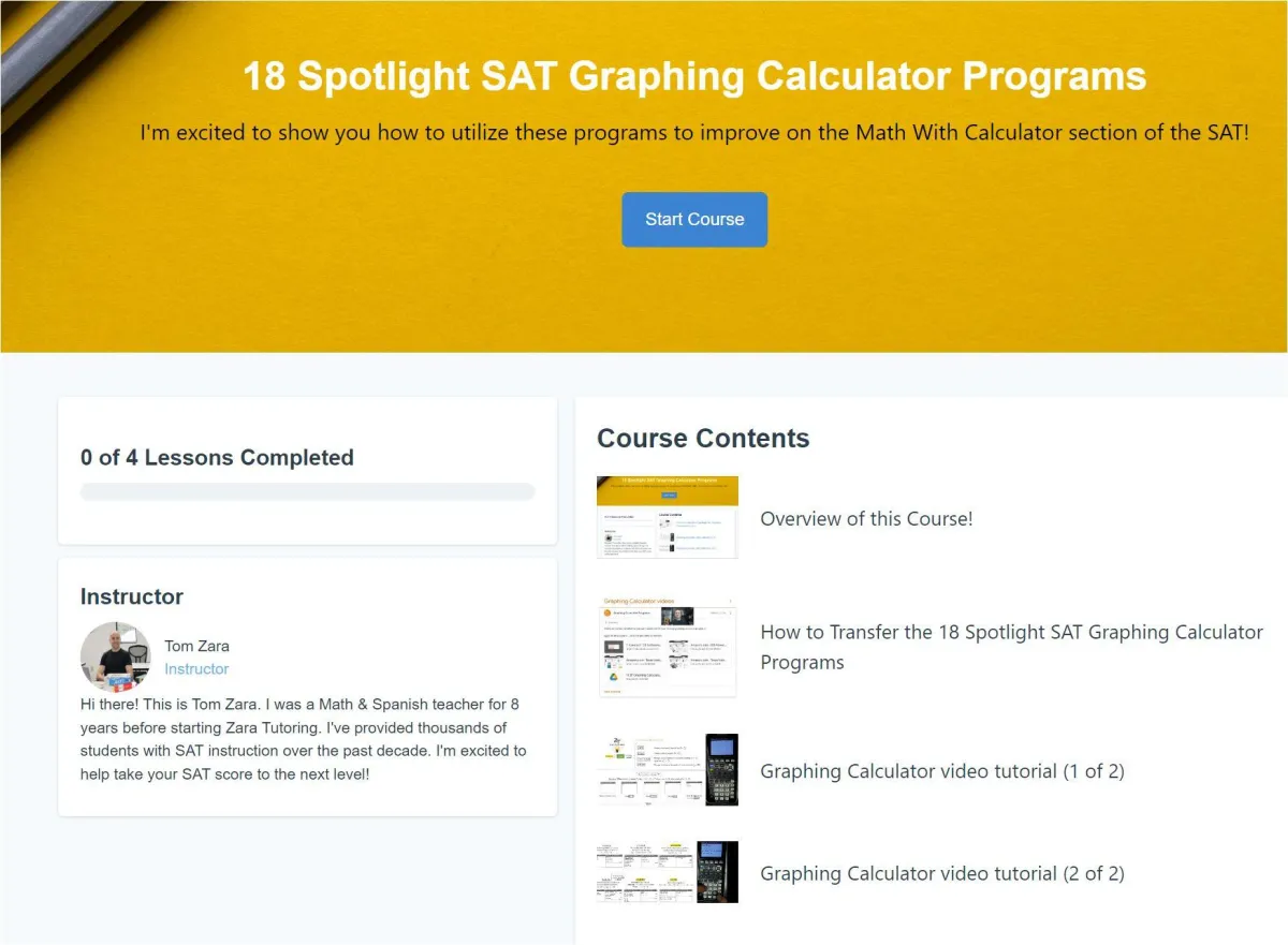 These 18 graphing calculator programs are ALL permitted on the SAT and are EXTREMELY useful. You'll gain IMMEDIATE access to ALL 18 programs, a short tutorial in which I explain how to transfer the programs to your calculator, a 15-minute video where I walk you through how to utilize each program, and a reference document so you can quickly recall which program to use when.
